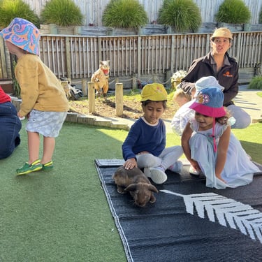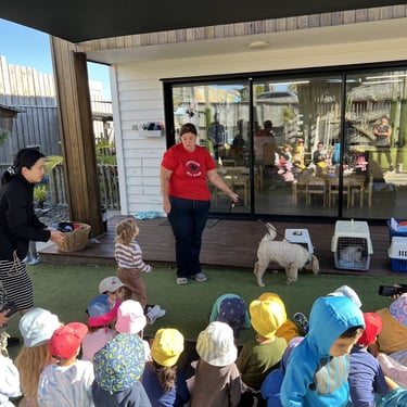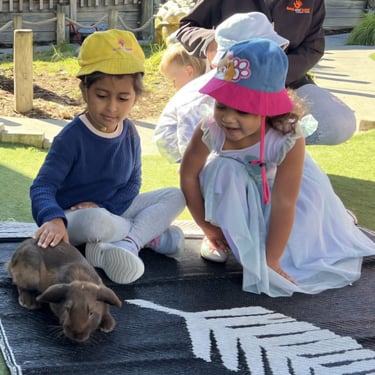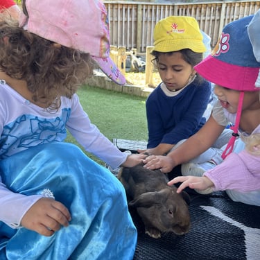 We visited Aria Gardens on 26 March 2025. The animals that visited were: Piper (Miniature Poodle x Lagotto Romagnolo dog); Easter (Mini Lop bunny); Marshmallow (XBred bunny); Ace (Rex bunny) Fudge (Mini Lop bunny); Henny (bantam X hen); Goldie (Brown shaver hen); baby chicks.